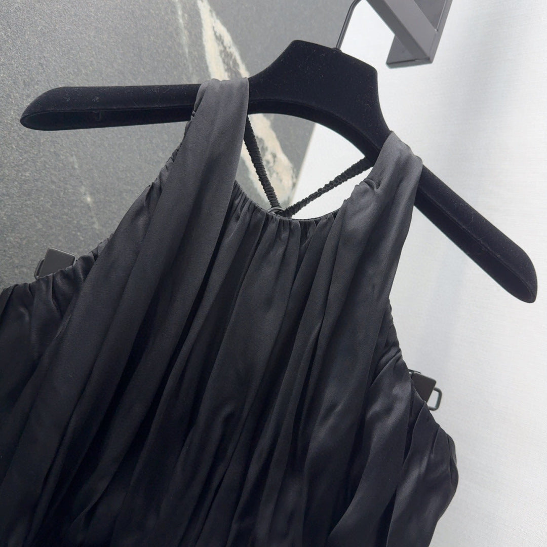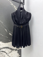 LV 25 Pleated Halter Dress Black Rayon