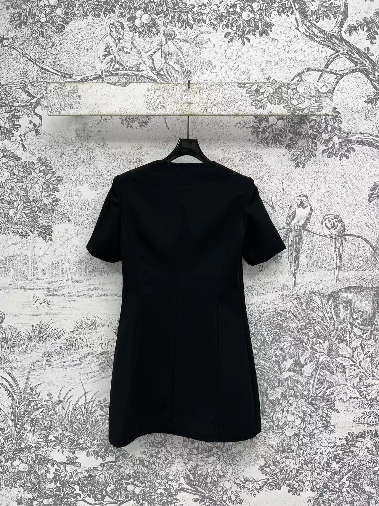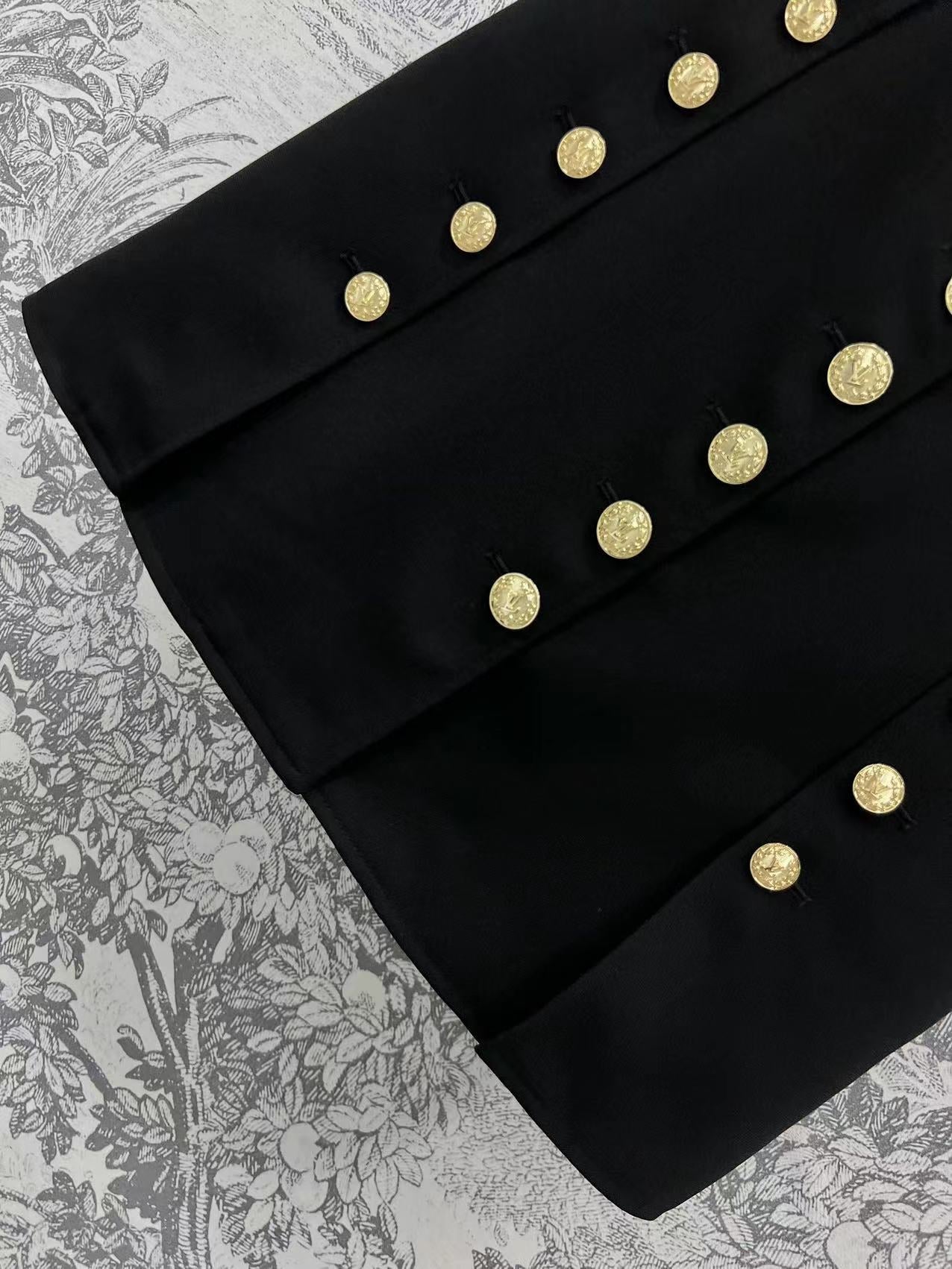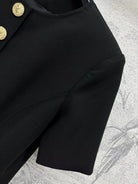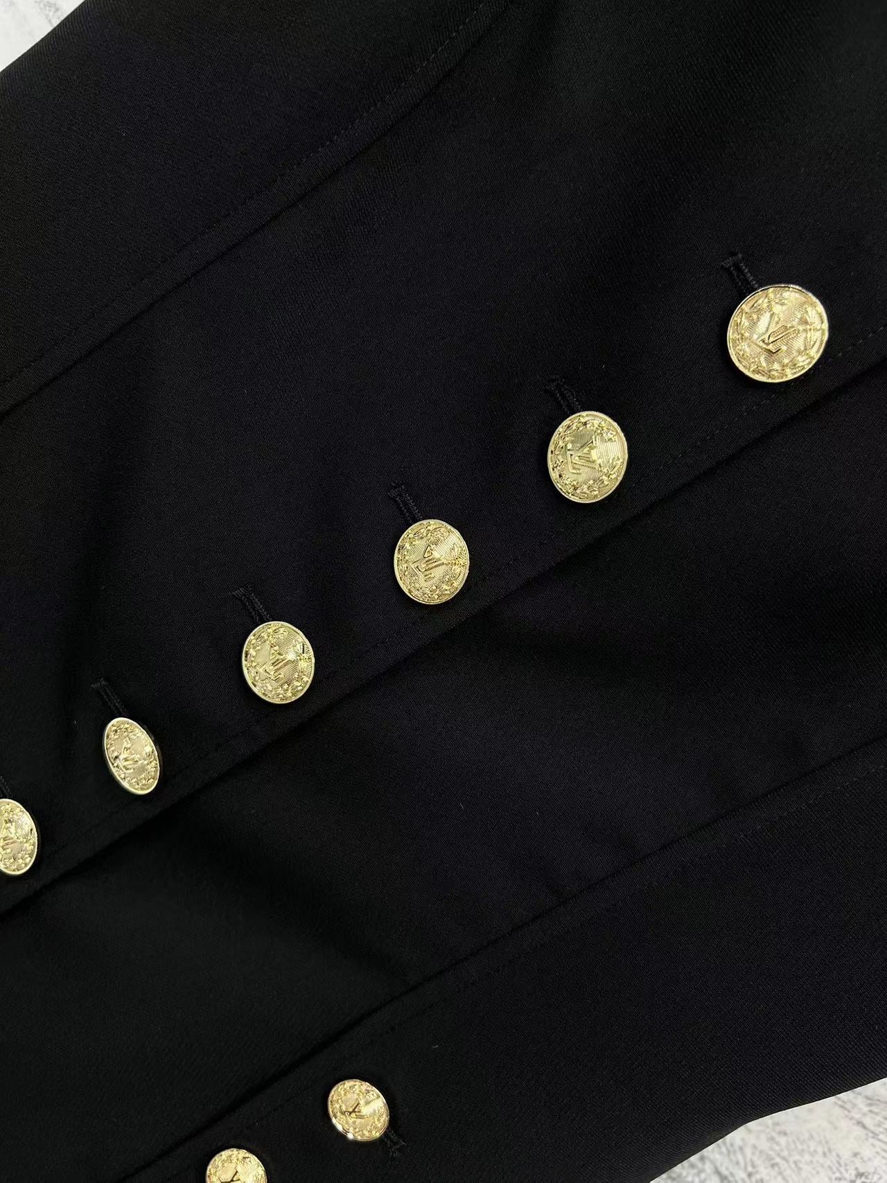 LV 25 Round-Neck Logo Metal Buttoned Dress Black Poliester