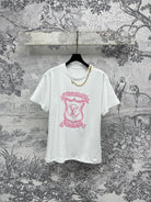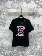 LV 25 Round Neck Metal Zipper T-Shirt Black White Cotton