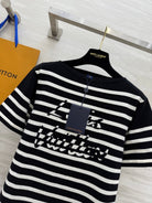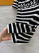LV 25 Striped Letter Jacquard One-Shoulder Knitted Black White Cotton Polyester