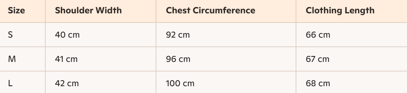 • Size: S, M, L