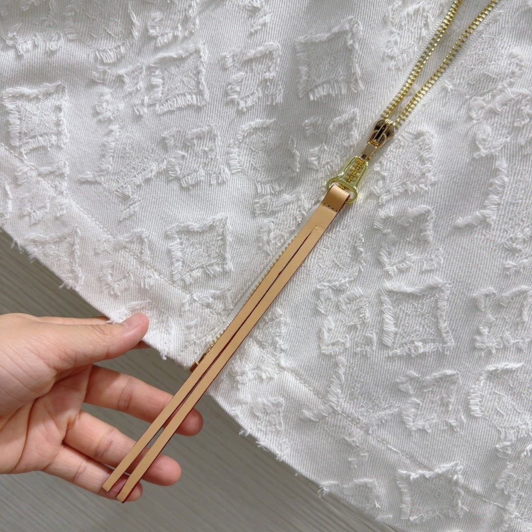 LV 25S Monograw Jacquard Fabric Skirt White Cotton