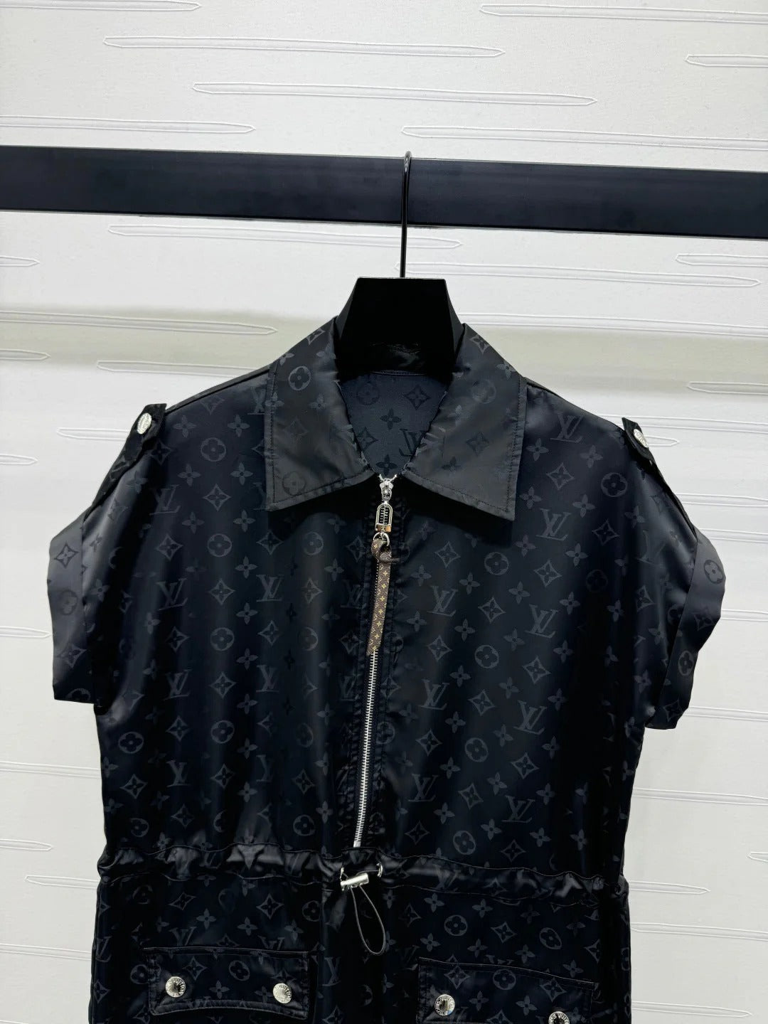 LV 25S SHORT SLEEVE JACQUARD DRAWSTRING DRESS 264215