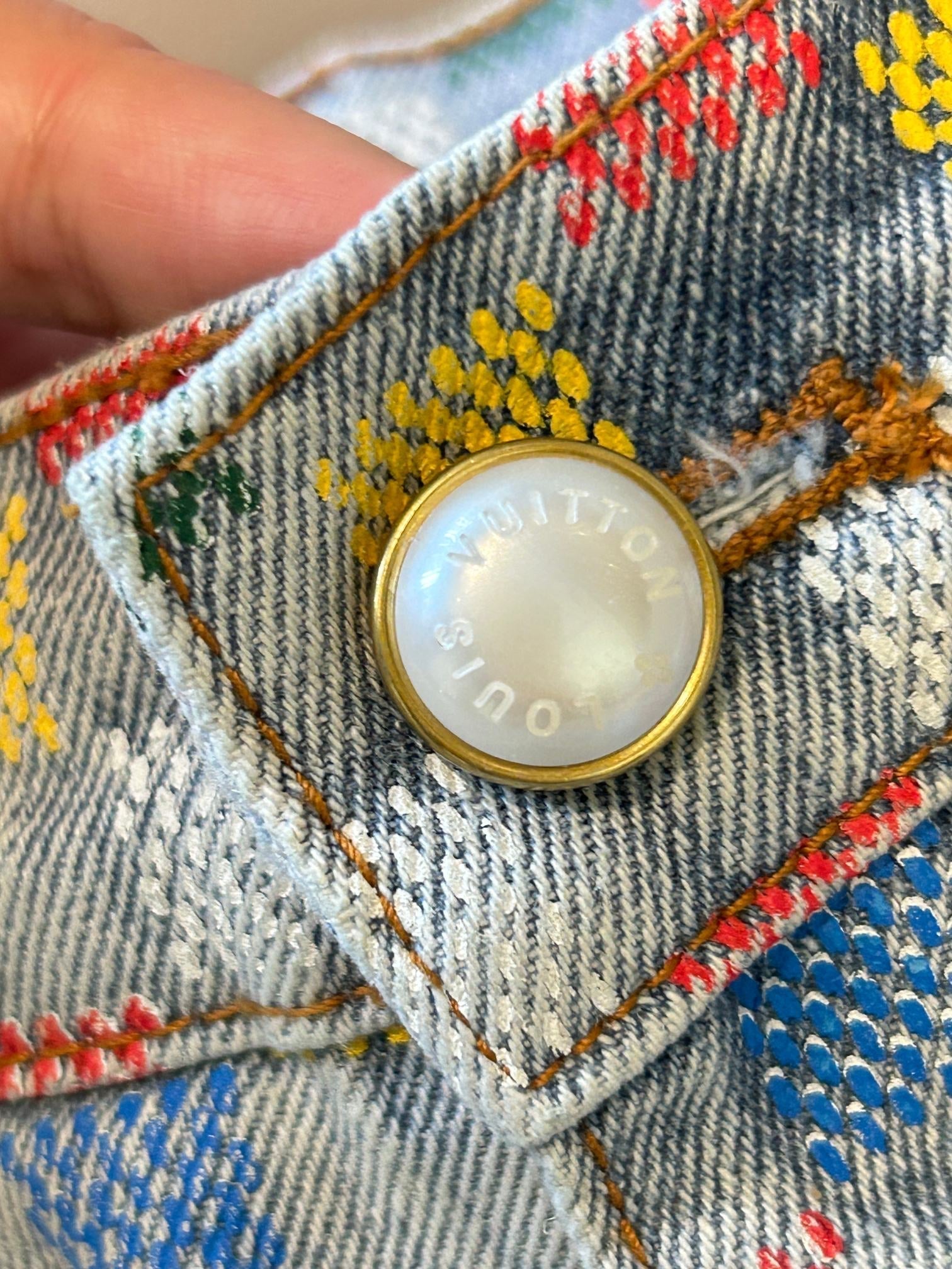 LV Checkerboard Design Jeans Multicolor Cotton
