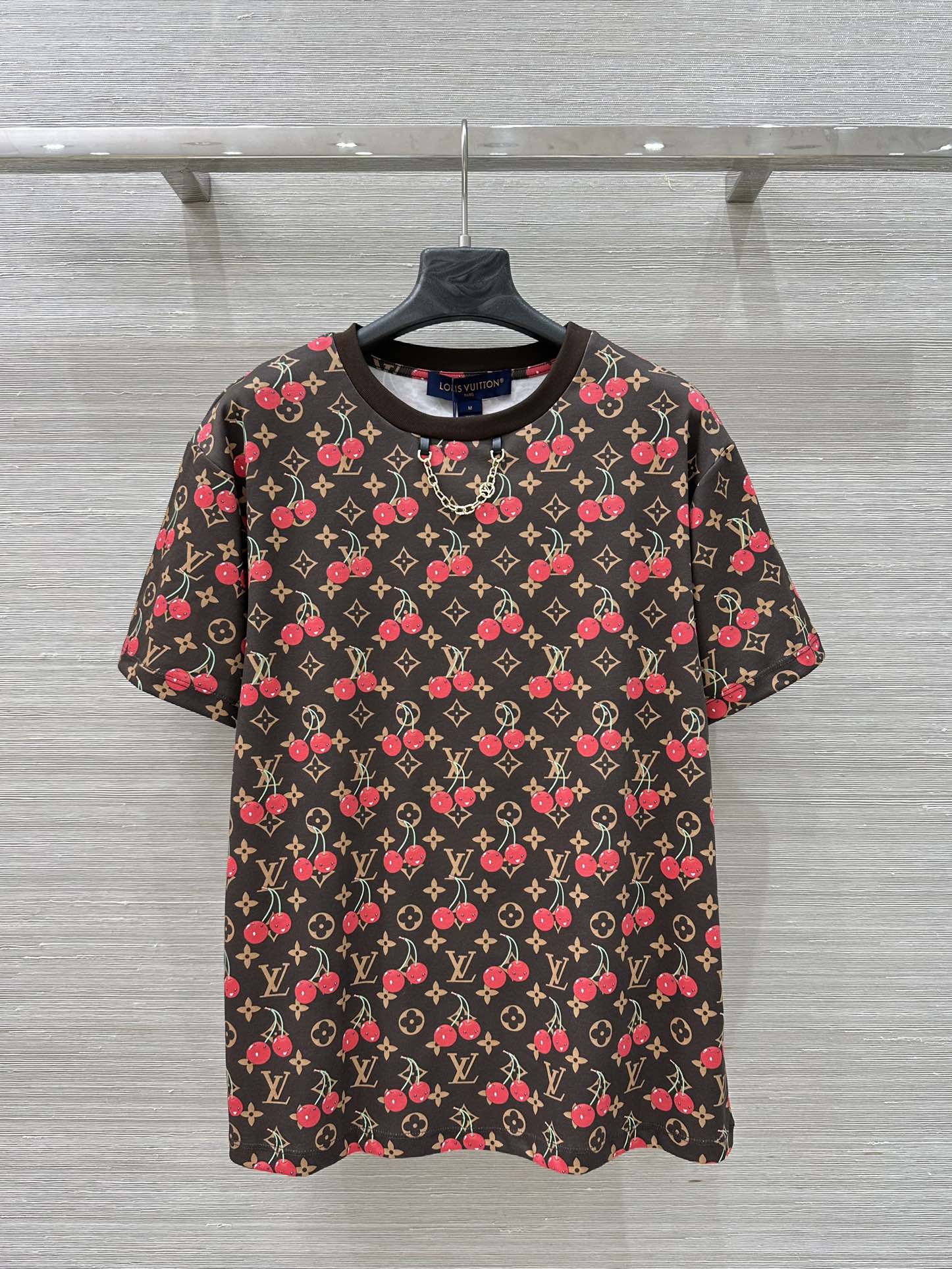 LV Classic Monogram Print Cherry Brown Red Cotton