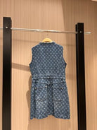 LV Denim Fabric Double Head Zipper Dress Black Blue Cotton