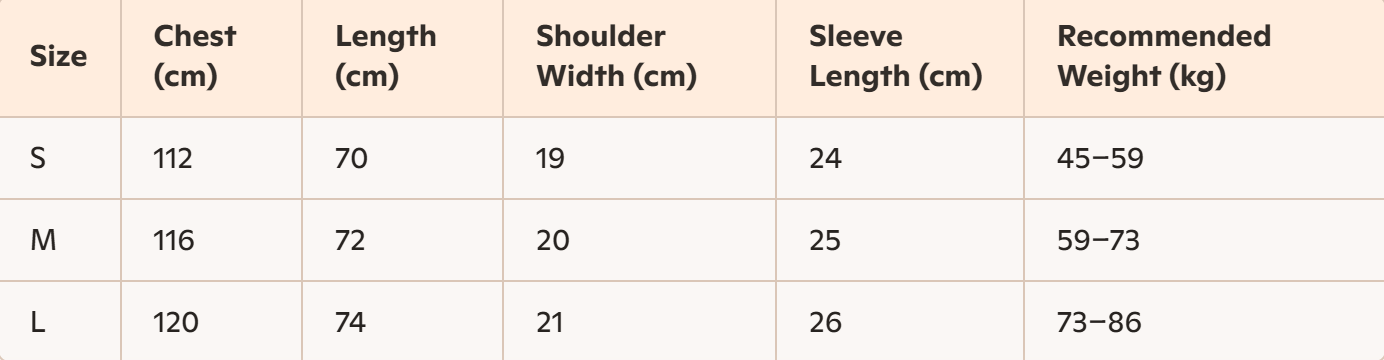 • Size: S, M, L