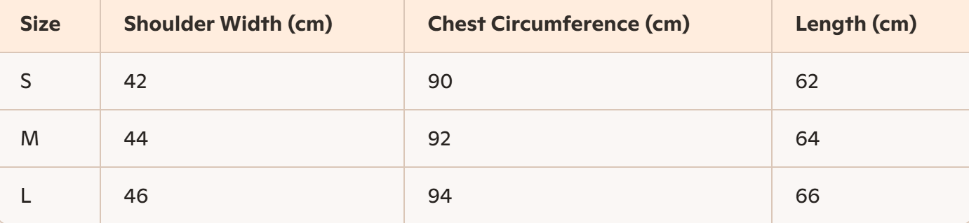 • Size: S, M, L