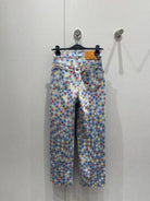 LV Plaid Multicolor Denim Jeans Blue Cotton