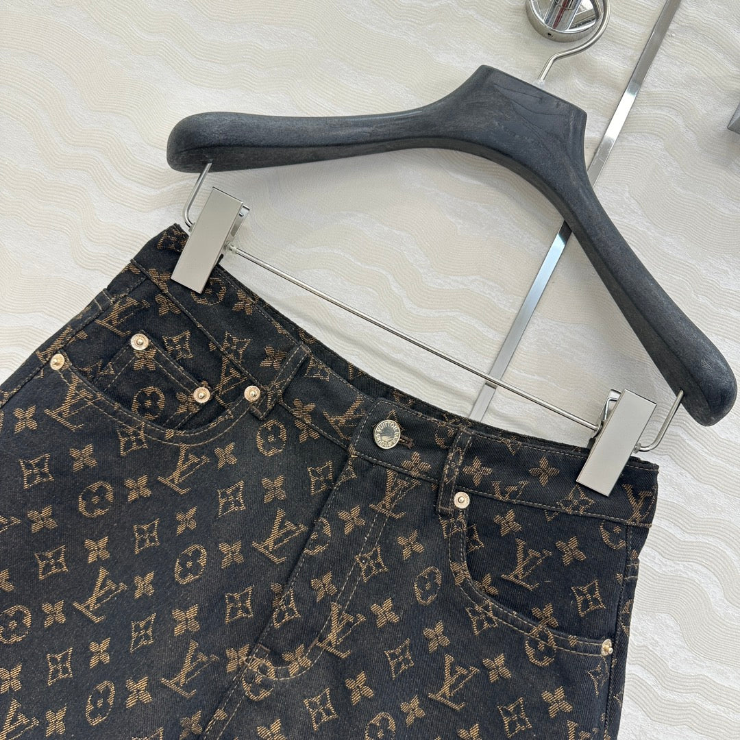 LV 25 Classic Logo Denim Skirt Black Cotton