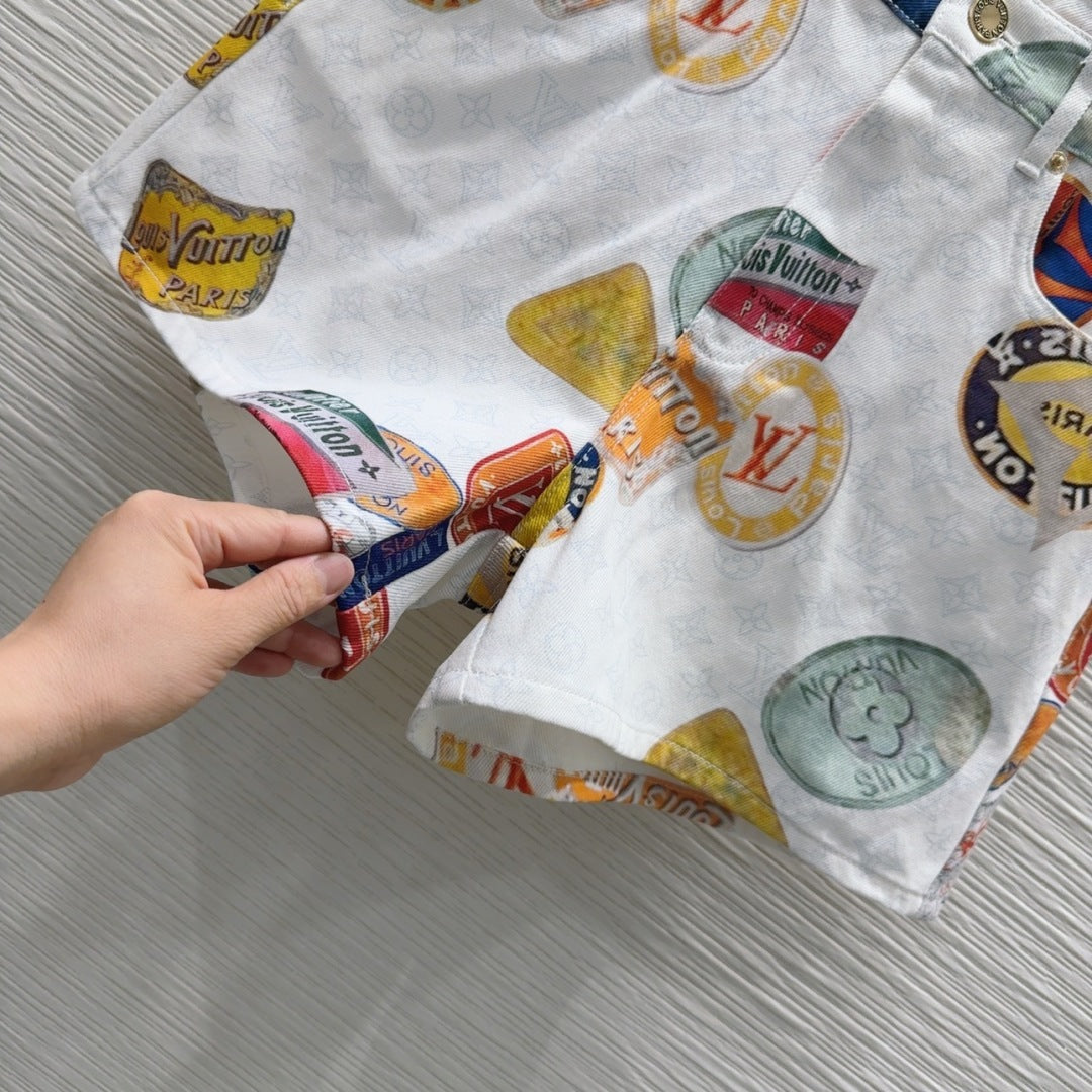 LV 25 Classic Logo Denim Shorts Black Cotton
