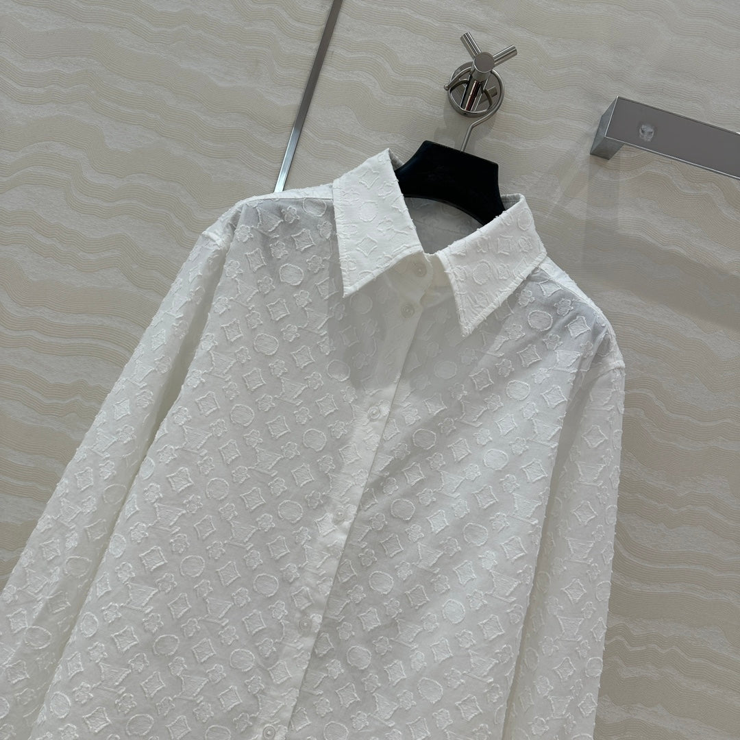 LV 25 Luxurious Advanced Shirt White Blue Polyester