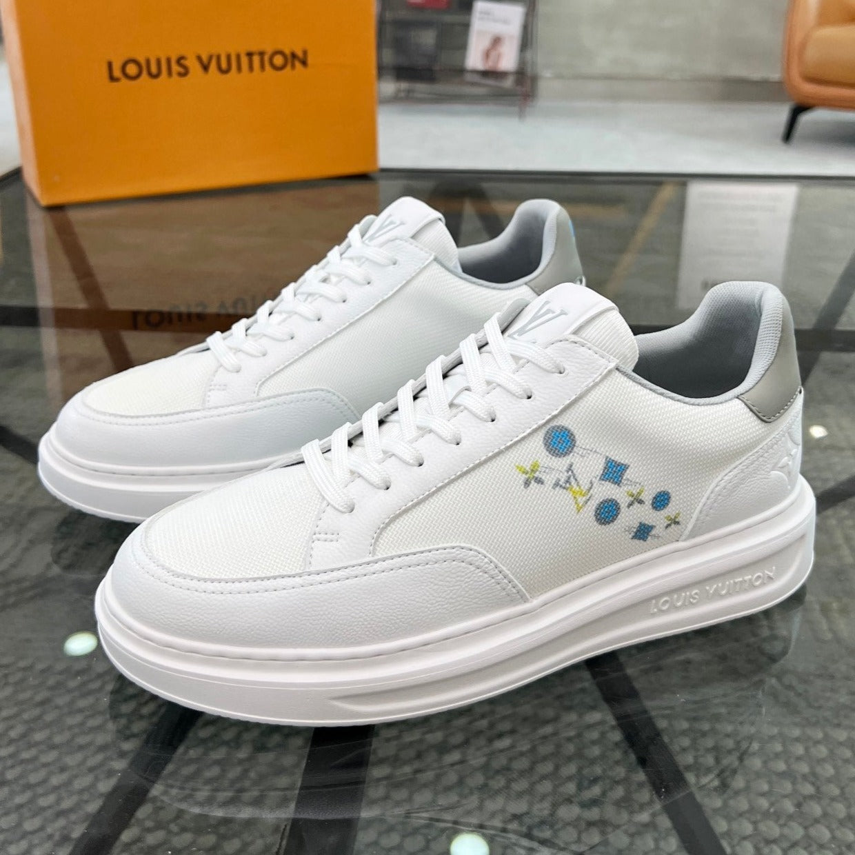 LV TRAINER SHOES IN WHITE MIX BLUE CALFSKIN