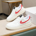 LV AIR FORCE 1 GLOSSY WHITE CALFSKIN WITH RED MONOGRAM LOGO