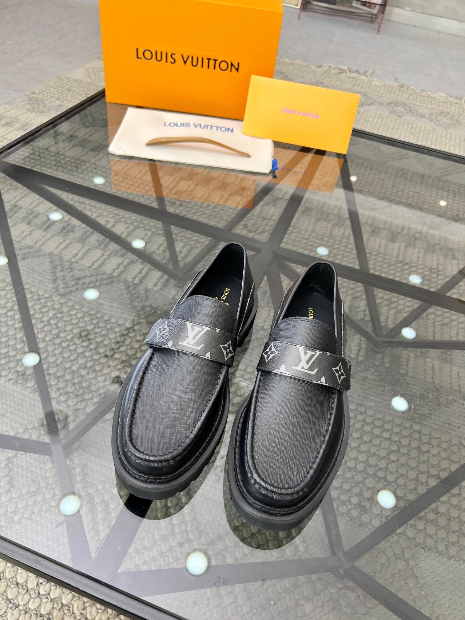 LV LOAFERS BLACK CALFSKIN WITH MONOGRAM STRAP