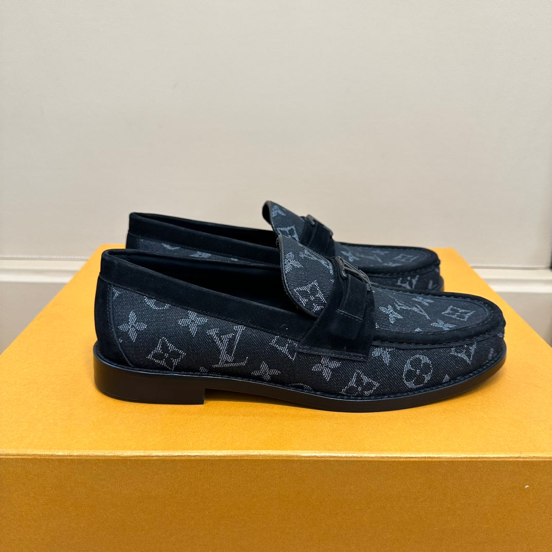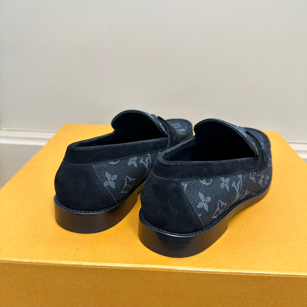 LV MAJOR LOAFERS IN BLACK MONOGRAM DENIM