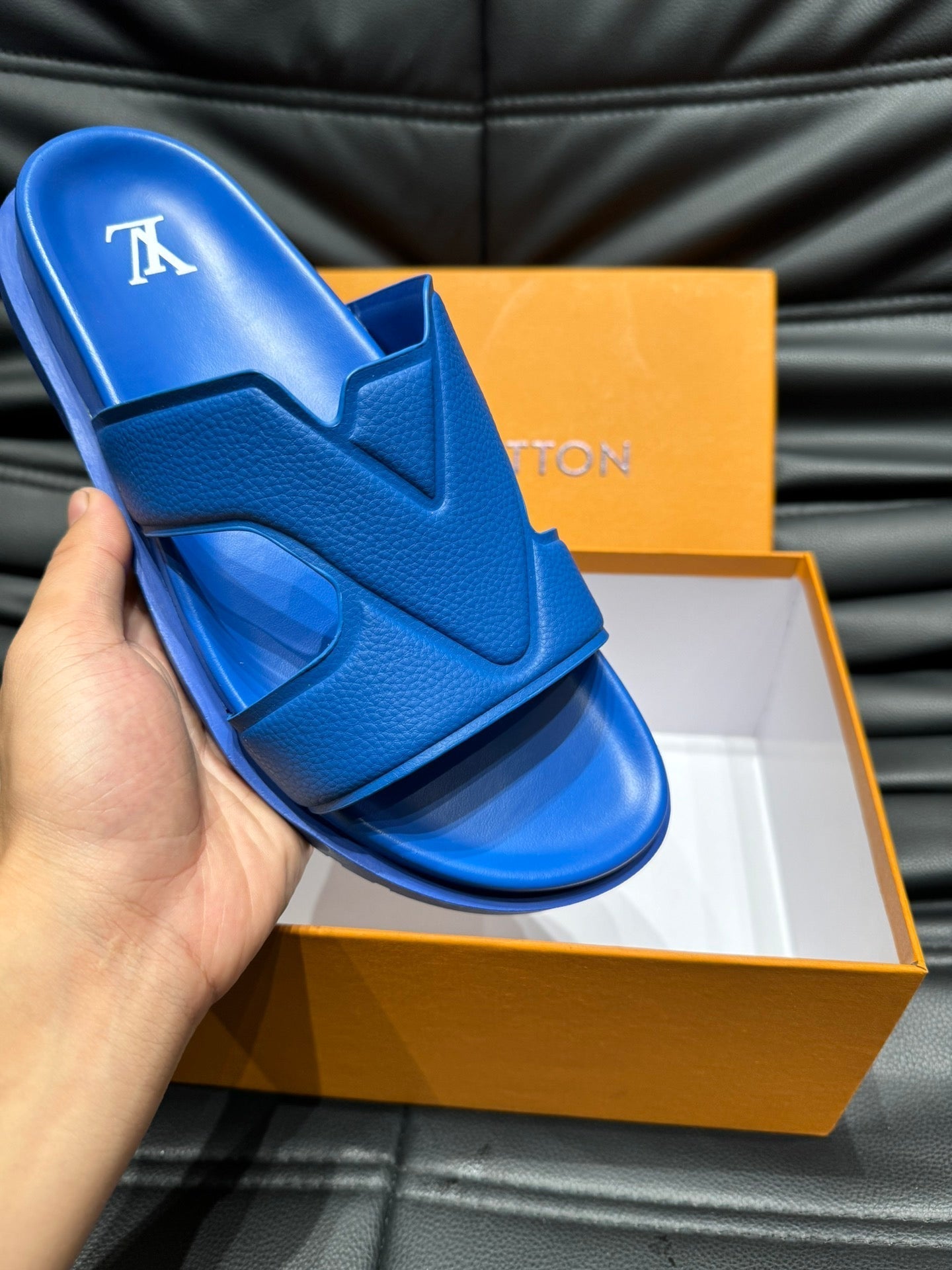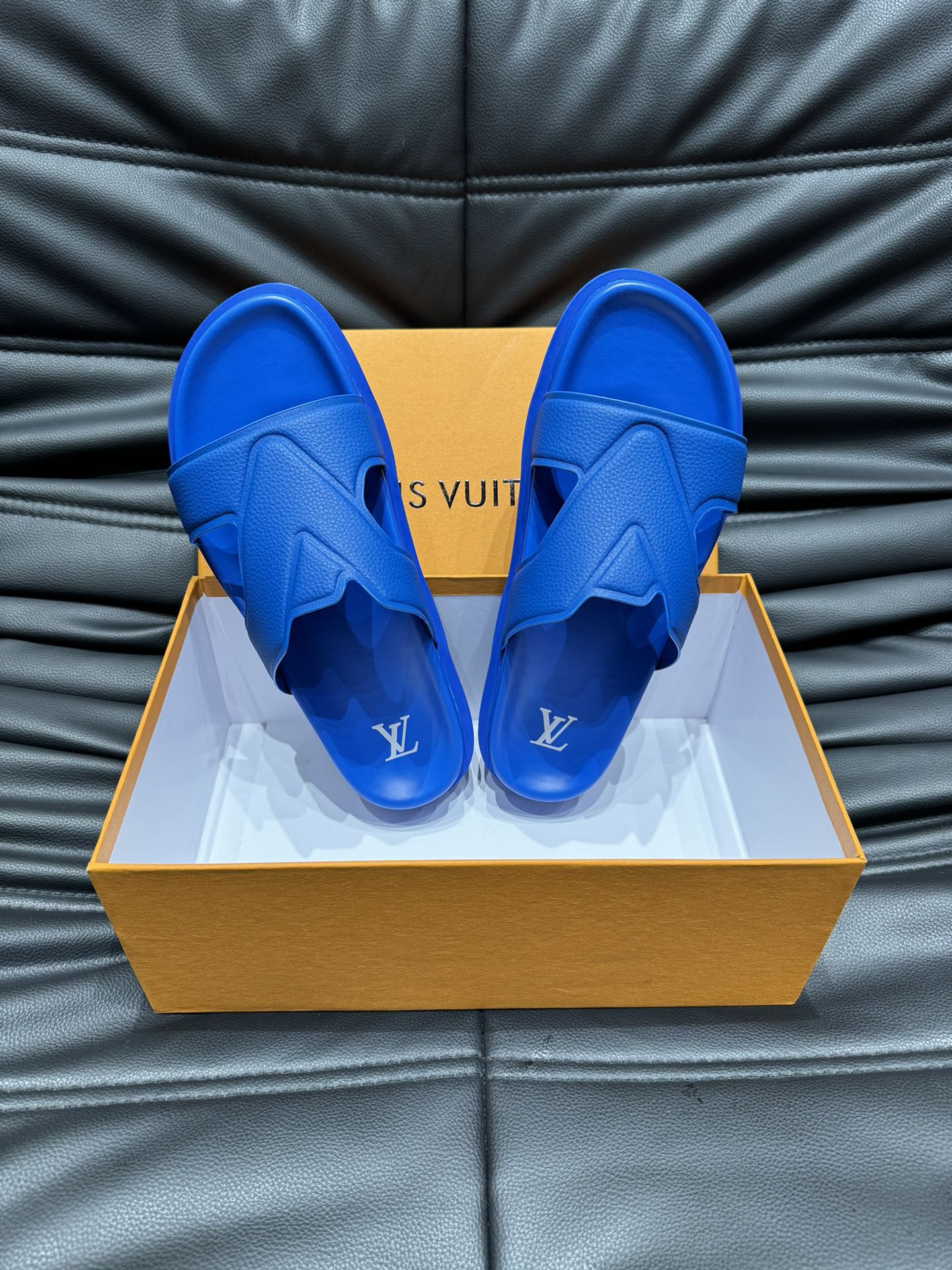 LV OASIS MULE IN COBALT BLUE CALFSKIN