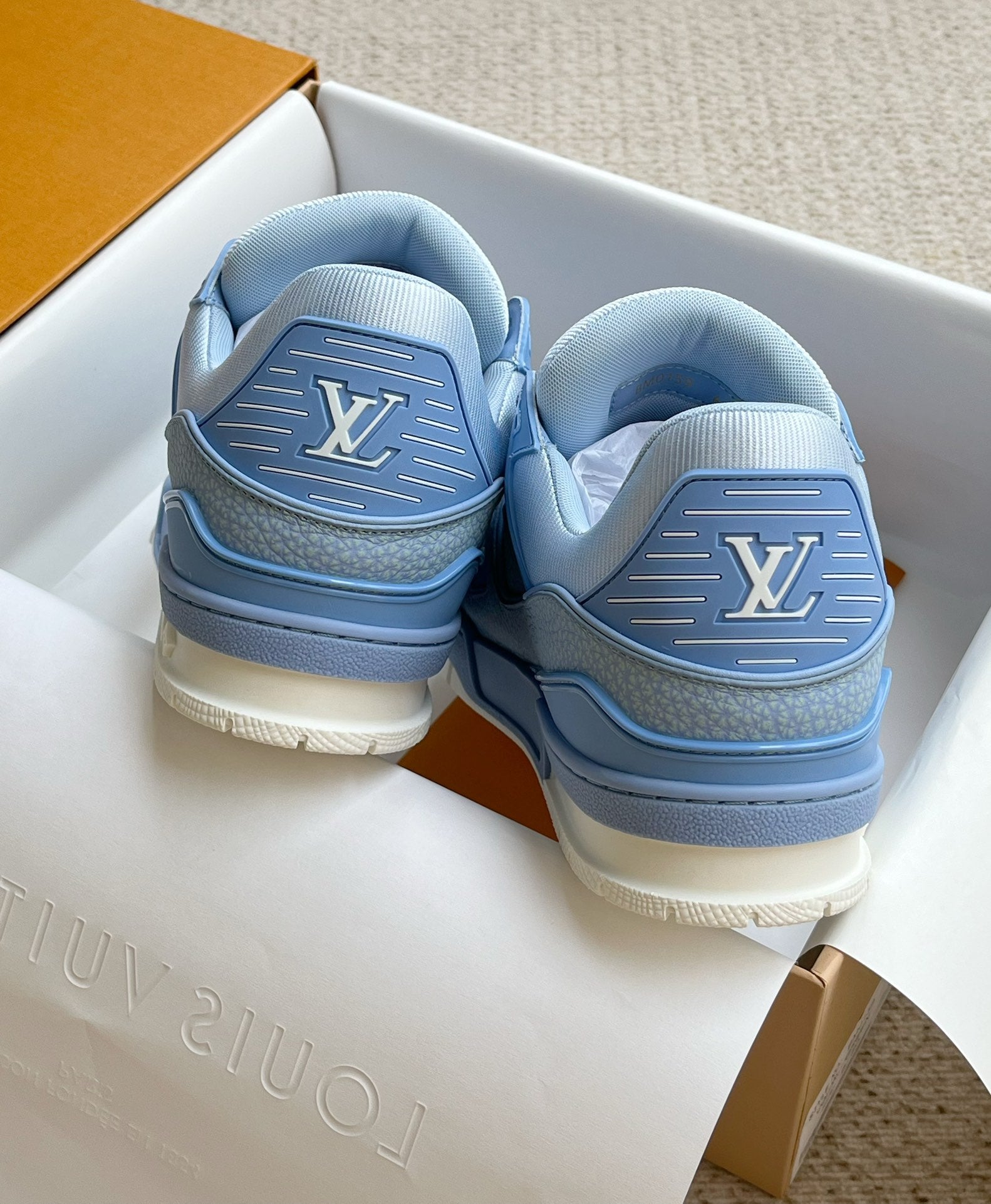 LV TRAINER SHOES SAPPHIRE BLUE GRAINED CALFSKIN