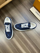 LV TRAINER SNEAKER IN BLACK MIX COBALT BLUE DENIM