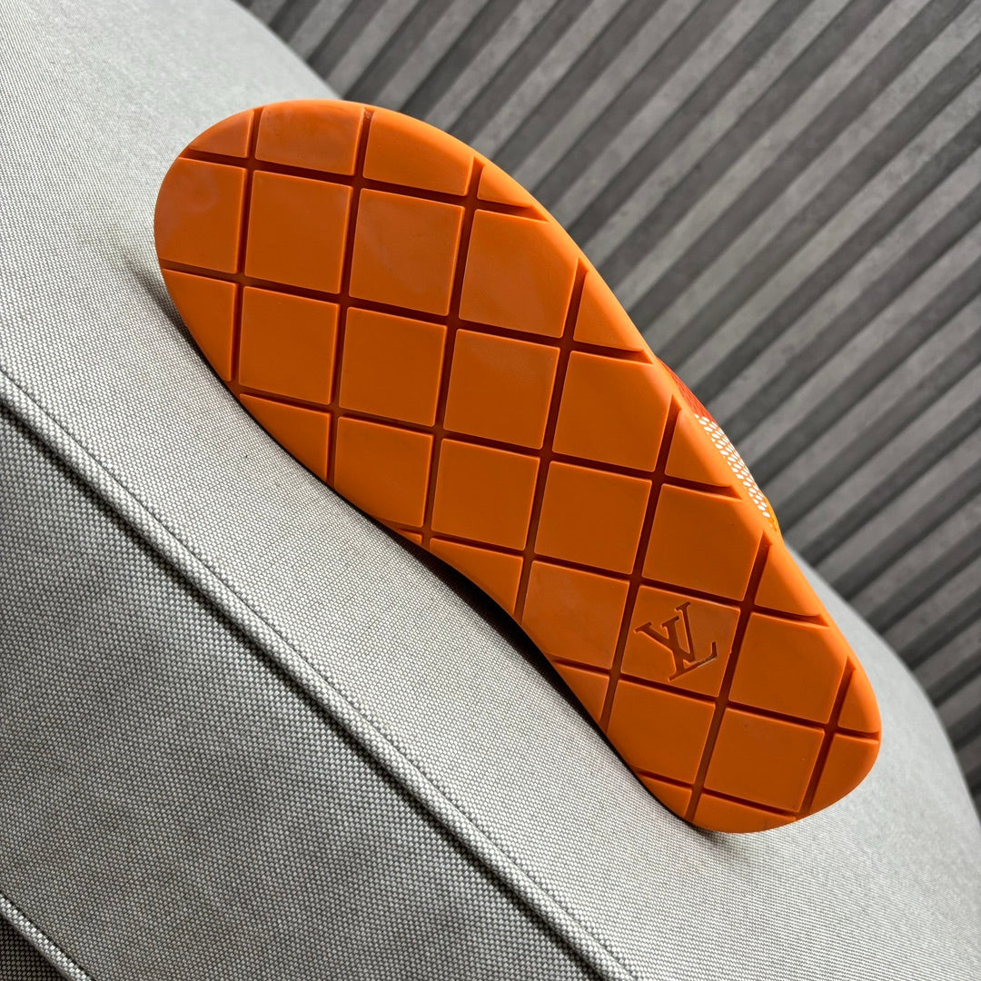 LV SNEAKERS IN GREY MIX WHITE MIX ORANGE CALFSKIN AND FABRIC BREATHABLE
