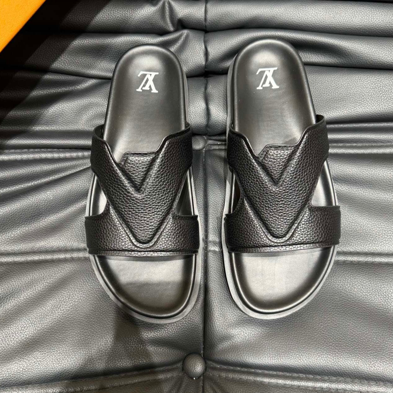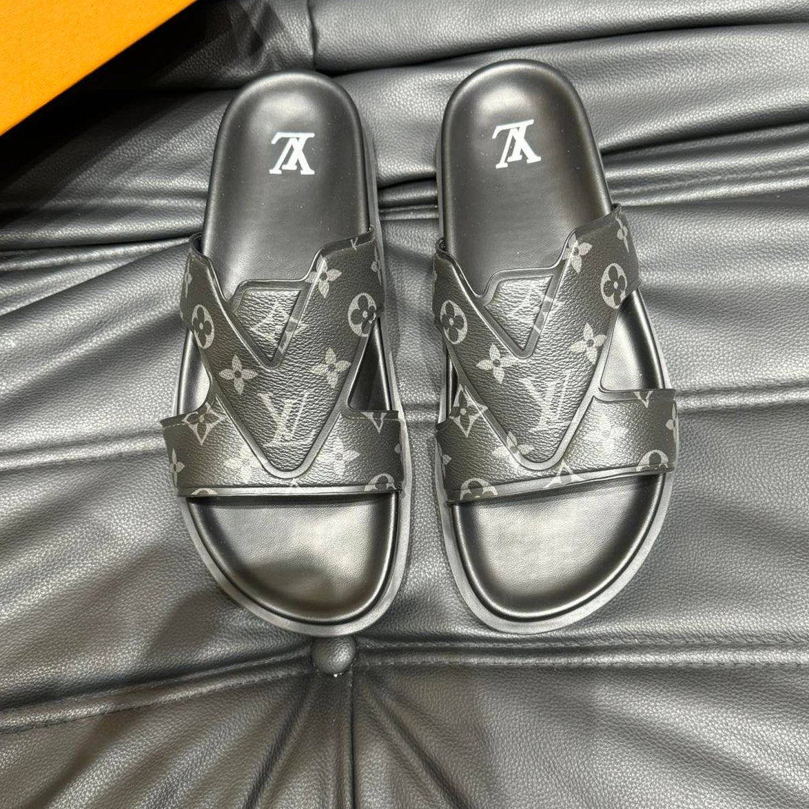 LV SLIPPERS IN BLACK MONOGRAM CALFSKIN