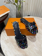 BOW FLAT MULES IN BLACK MONOGRAM LAMBSKIN