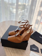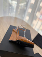 LA SCANDALE HIGH 10 CM WEDGE SANDALS IN BRONZE BROWN PATENT LEATHER