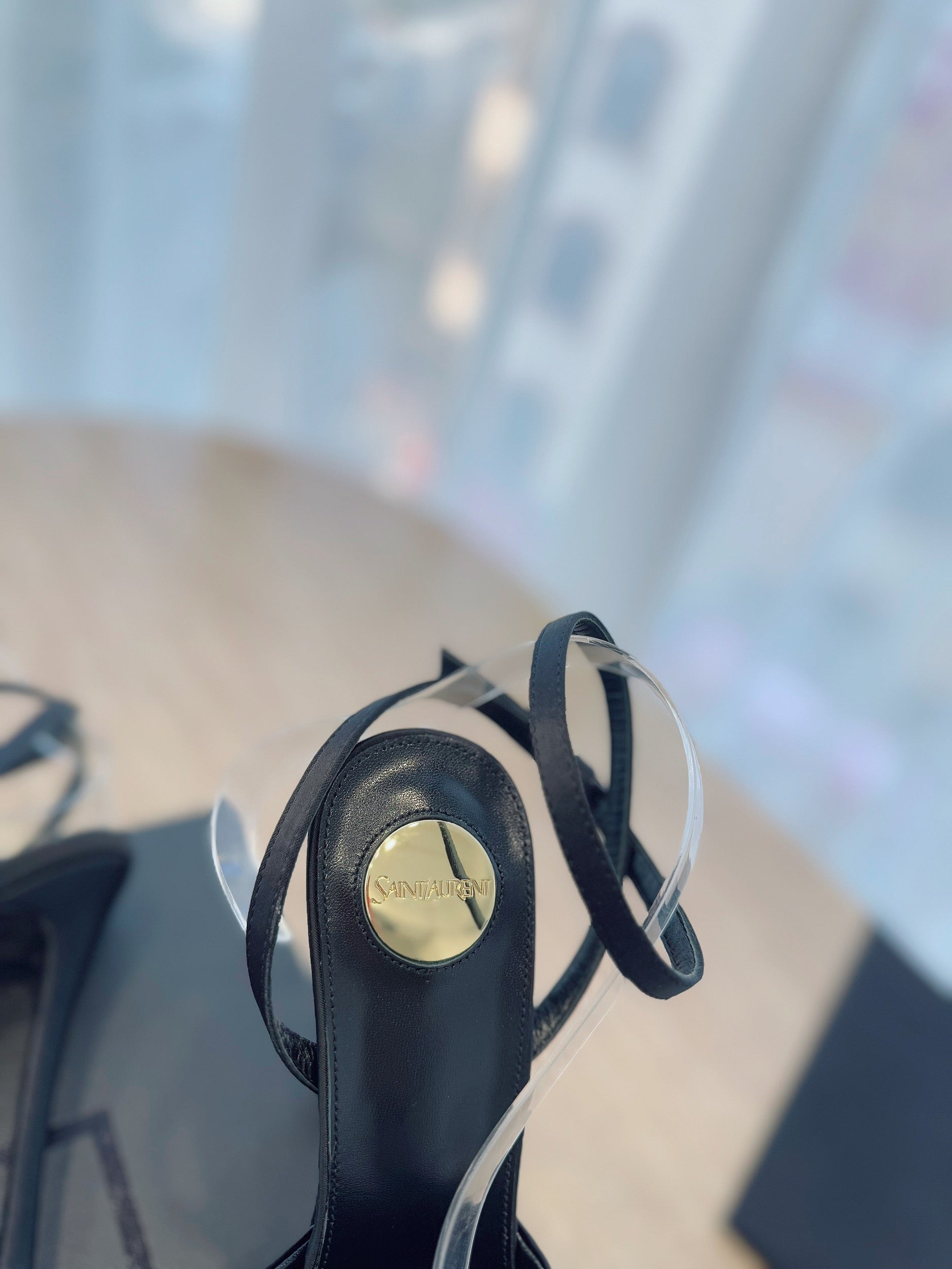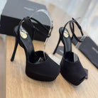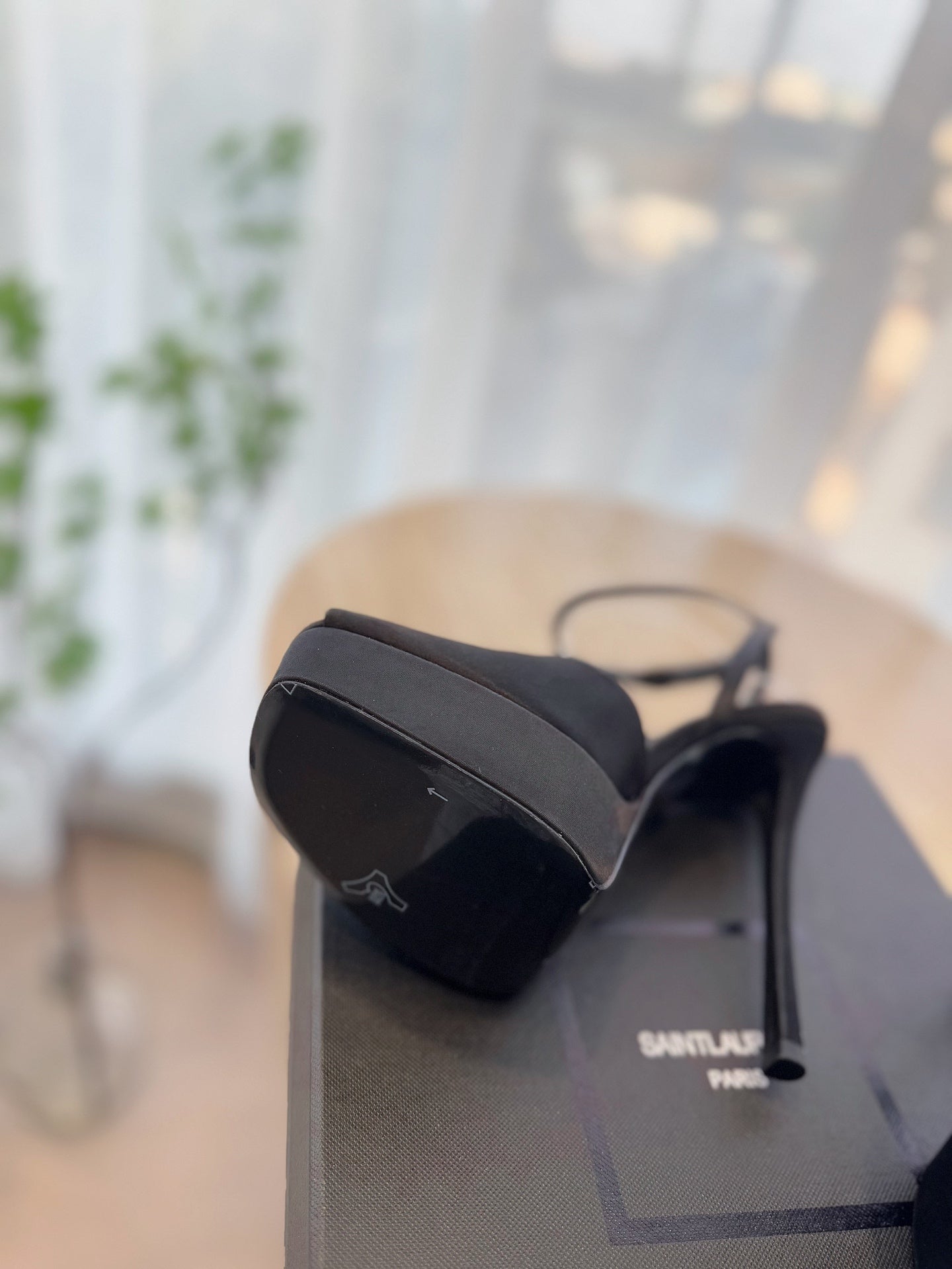 LA SCANDALE HIGH 14 CM PLATFORM SANDALS IN BLACK SATIN CREPE