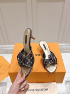 LV Floral Embroidered High Heels Black with Monogram Multicolor Leather 480509
