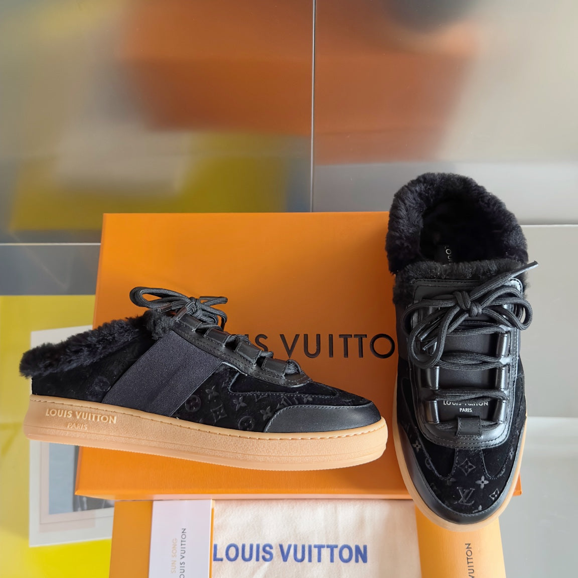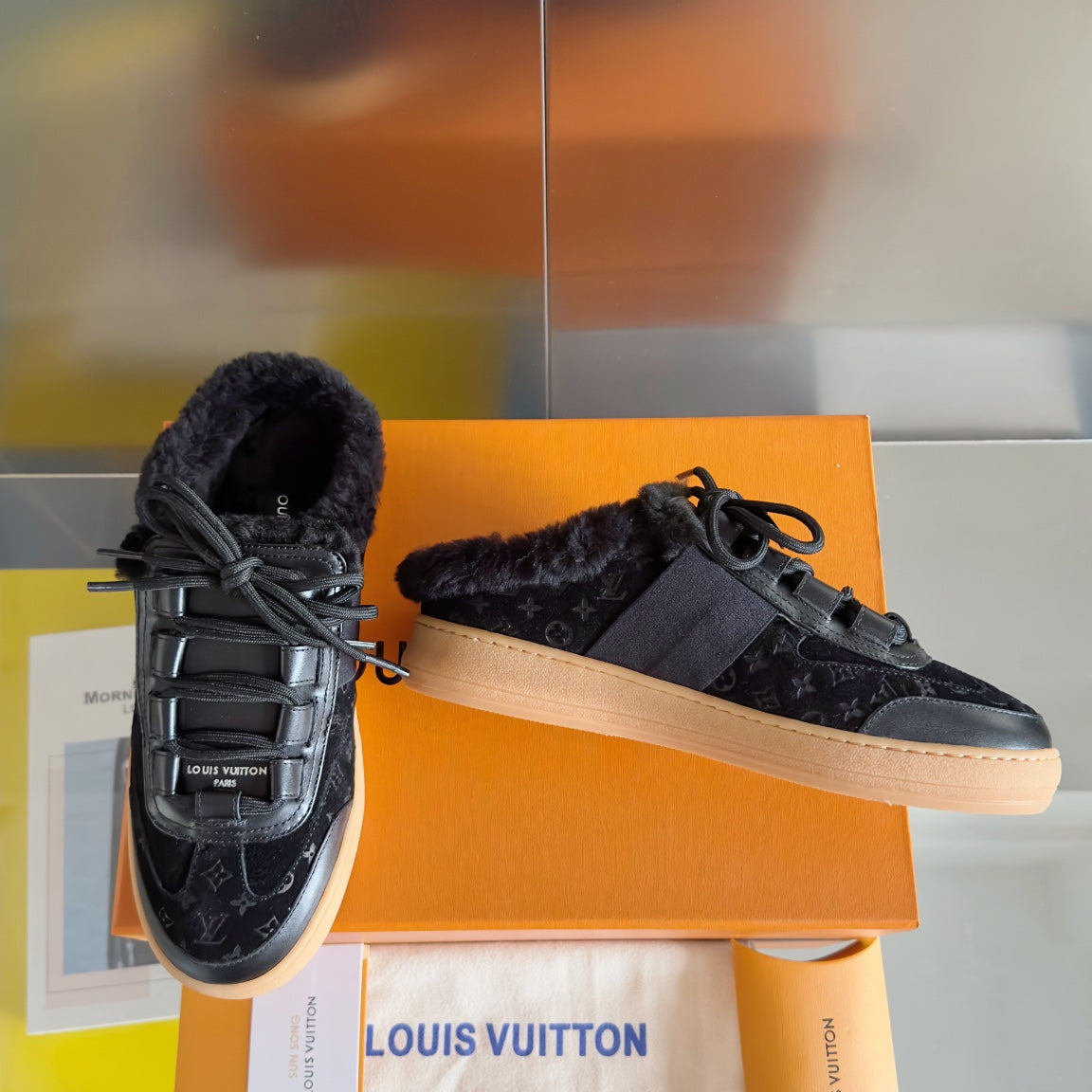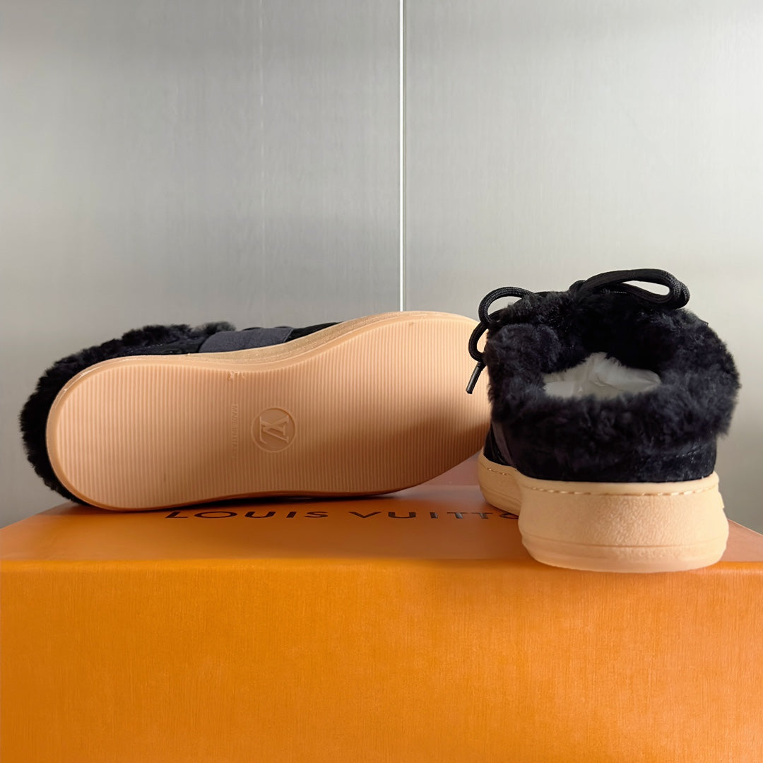 LV Lous Open Back Sneaker 30mm Black Monogram Suede