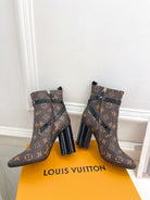 LV Silhouette Ankle Boots 100mm Dark Brown Monogram Calfskin