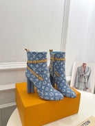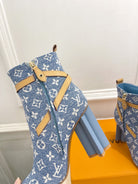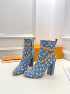 LV Silhouette Ankle Boots 100mm Light Blue Monogram Jacquard Fabric