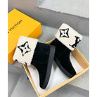 LV Snowdrop Flat Ankle Boot Black Mix White Monogram White Suede