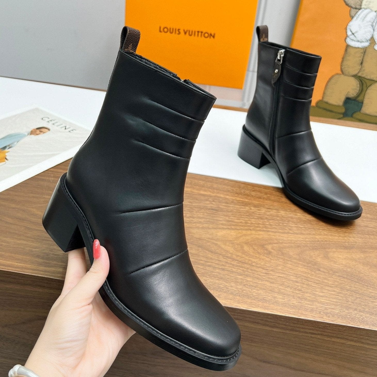 LV Citizen Flat Ranger Boot Plain Black Calfskin