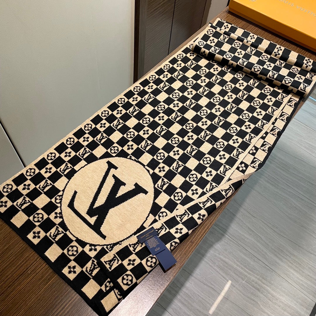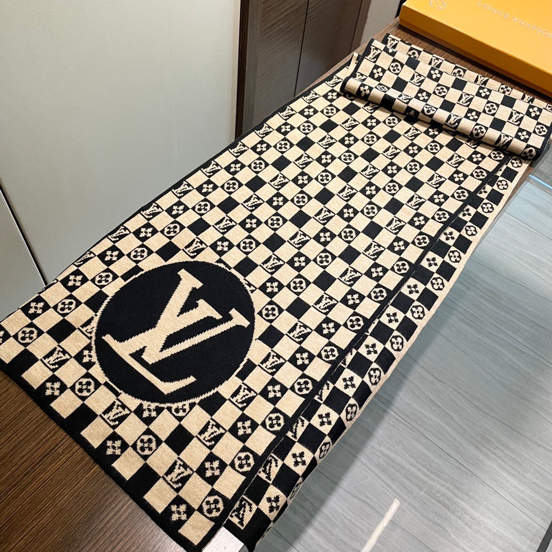 CLASSIC DAMIER SCARF 200 CM IN TORTILLA BROWN MIX BLACK CASHMERE 389749