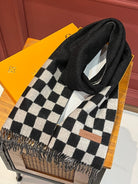 DAMIER SCARF 180 CM IN BLACK MIX WHITE CASHMERE 388315