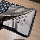 MONOGRAM SCARF 200 CM IN BLACK WOOL AND SILK 391065