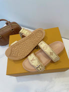 Bom Dia Flat Comfort Mule Beige Monogram Embossed Print Classic 241337