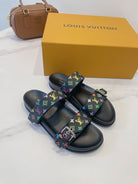 Bom Dia Flat Comfort Mule Black and Multicolored Monogram Canvas 241333