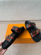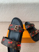 Bom Dia Flat Comfort Mule LV x TM Brown Sheepskin Mix Cherry Motif 319378