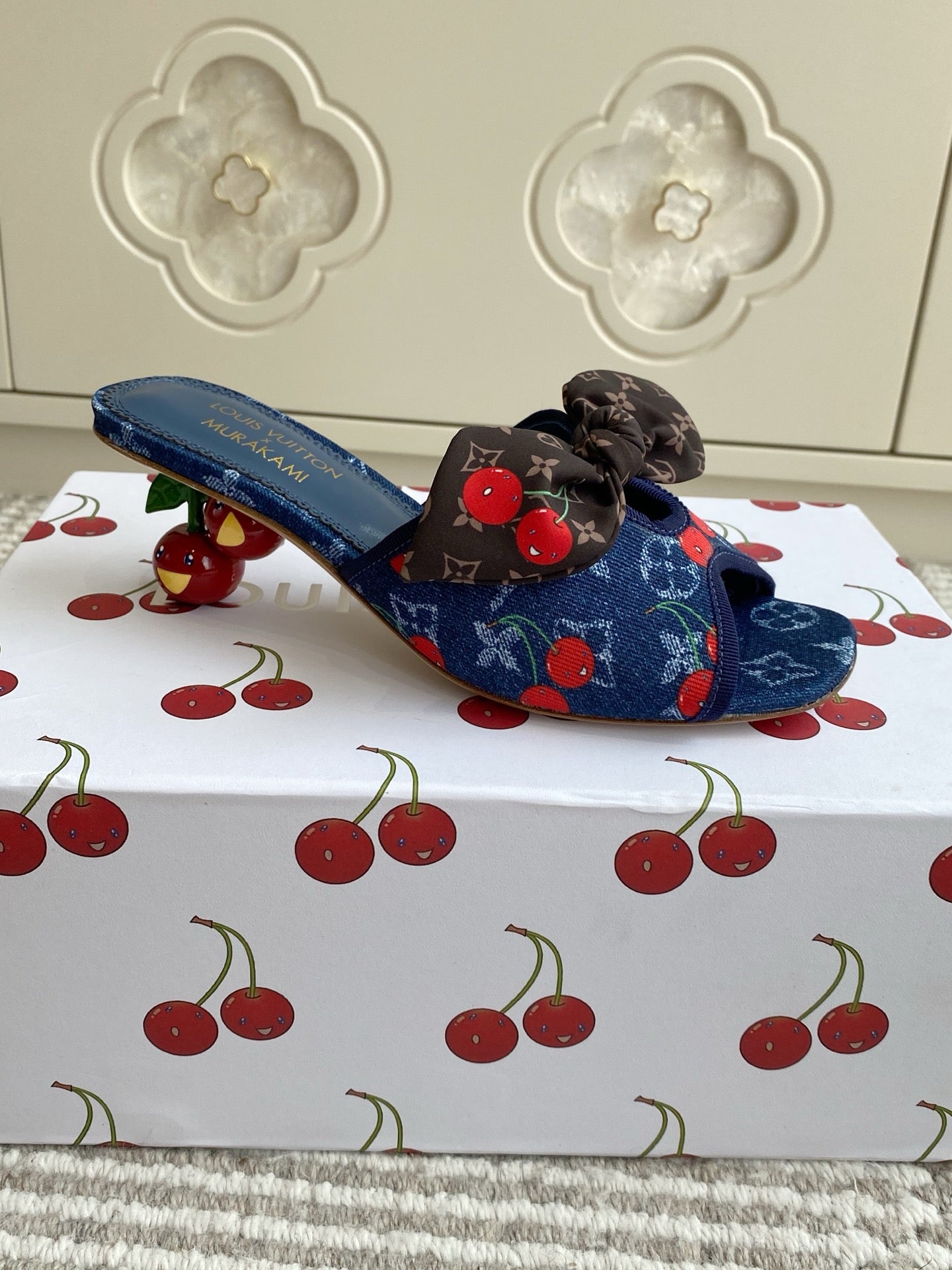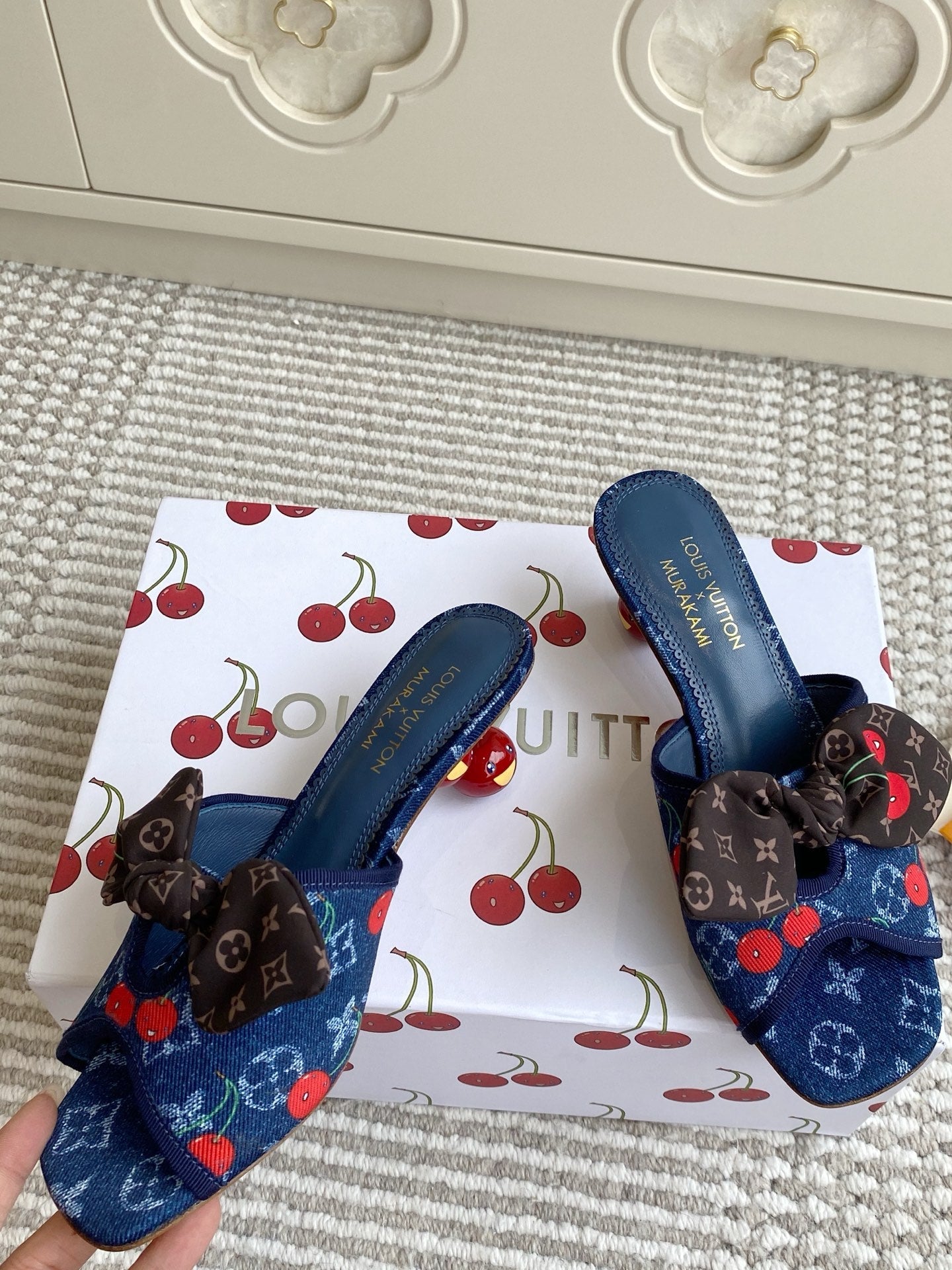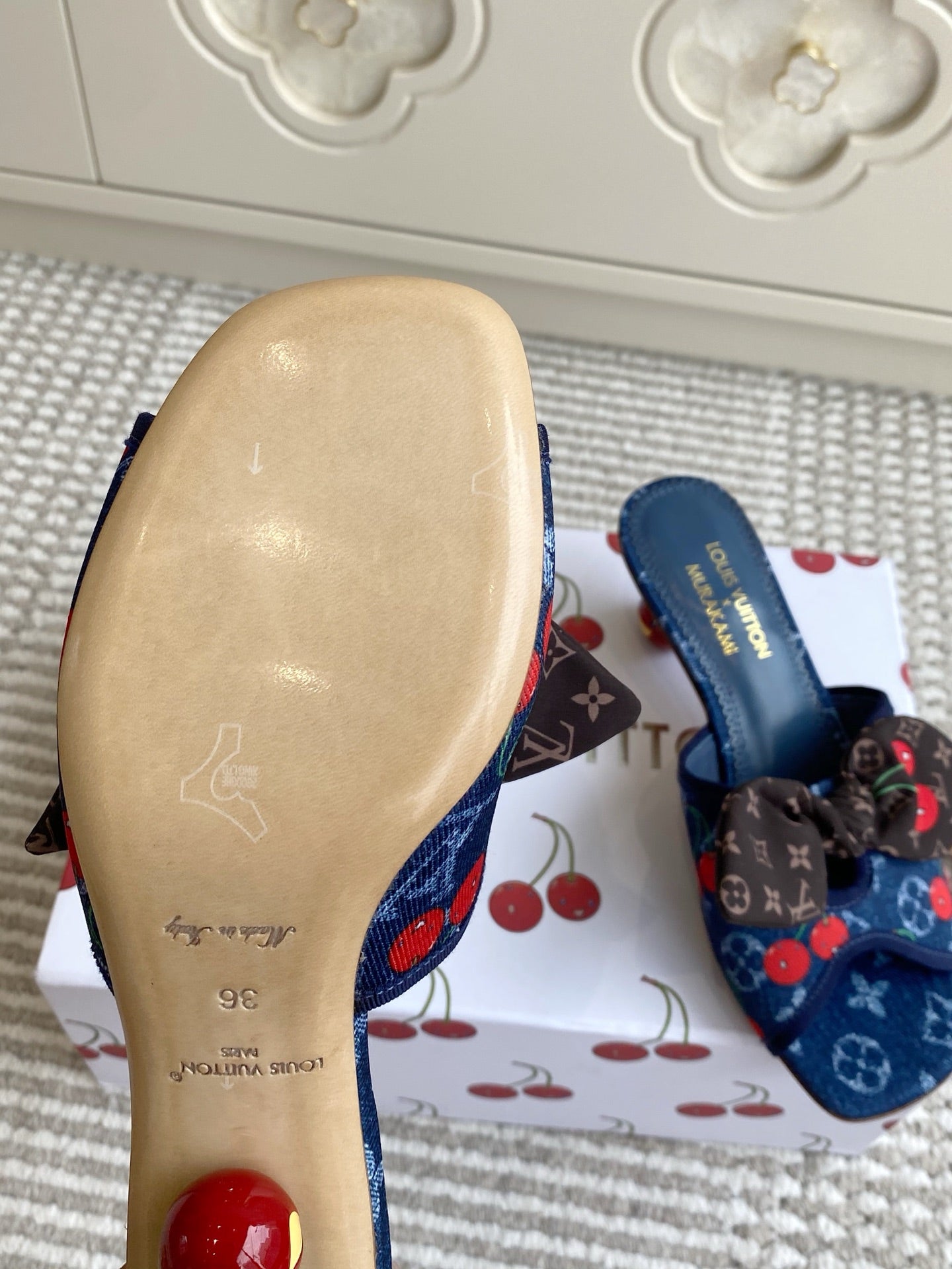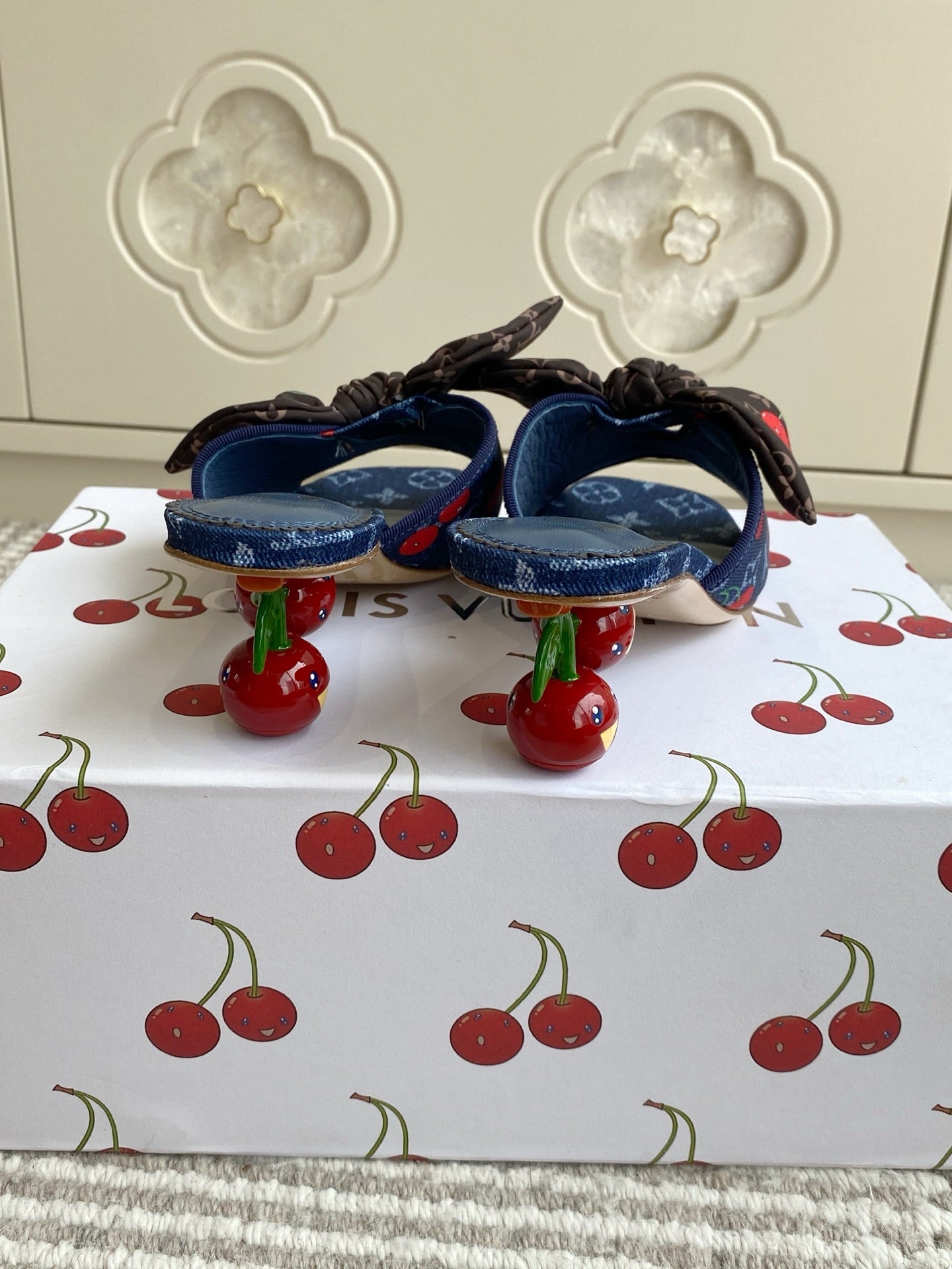 Cherry Series LV X TM CHERIE Sandals Beige Blue Denim 442130