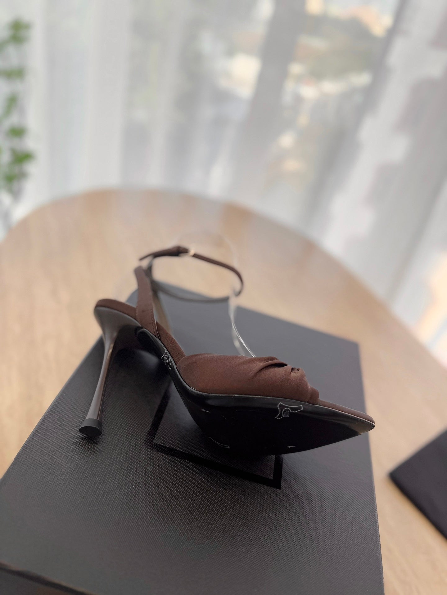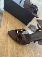 LOLA SANDAL 10 CM IN CHOCOLATE BROWN VISCOSE AND SILK