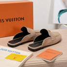 LV 25C Flat Mule Cream Suede 218312
