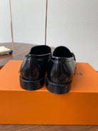 LV Chess Flat Loafer Brown Monogram Canvas & Black Patent Leather 477726