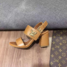 LV Horizon Ankle Strap Sandals 75mm Brown Yellow Calfskin