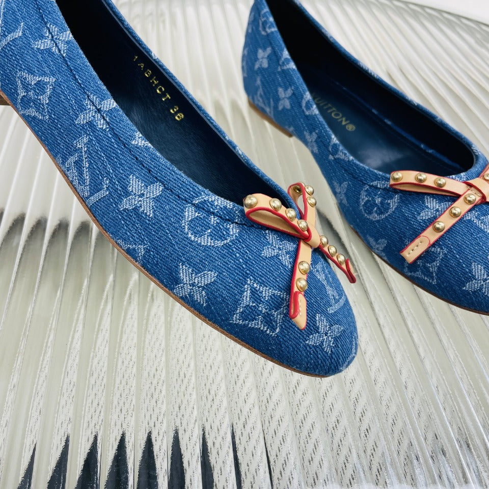 LV Nina Doll Shoes Dark Blue Monogram Denim Printed Fabric