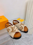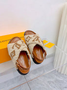 LV Paseo Flat Comfort Sandal Beige Brown Fleece