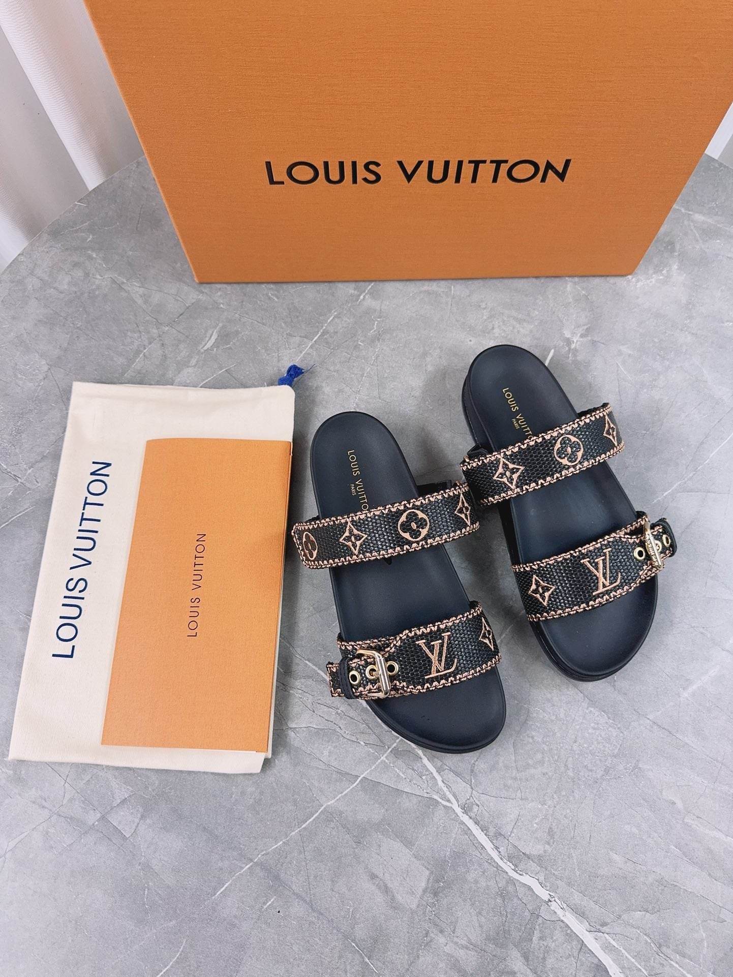 LV Sandals Black Embroidered Sedge