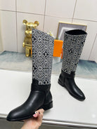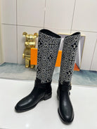 LV Westside Flat High Boot 40mm Black Mix White Monogram Lambskin