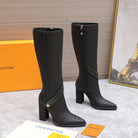 LV x Silhouette Basketweave Pattern Long Boots 95mm Black Leather 425686